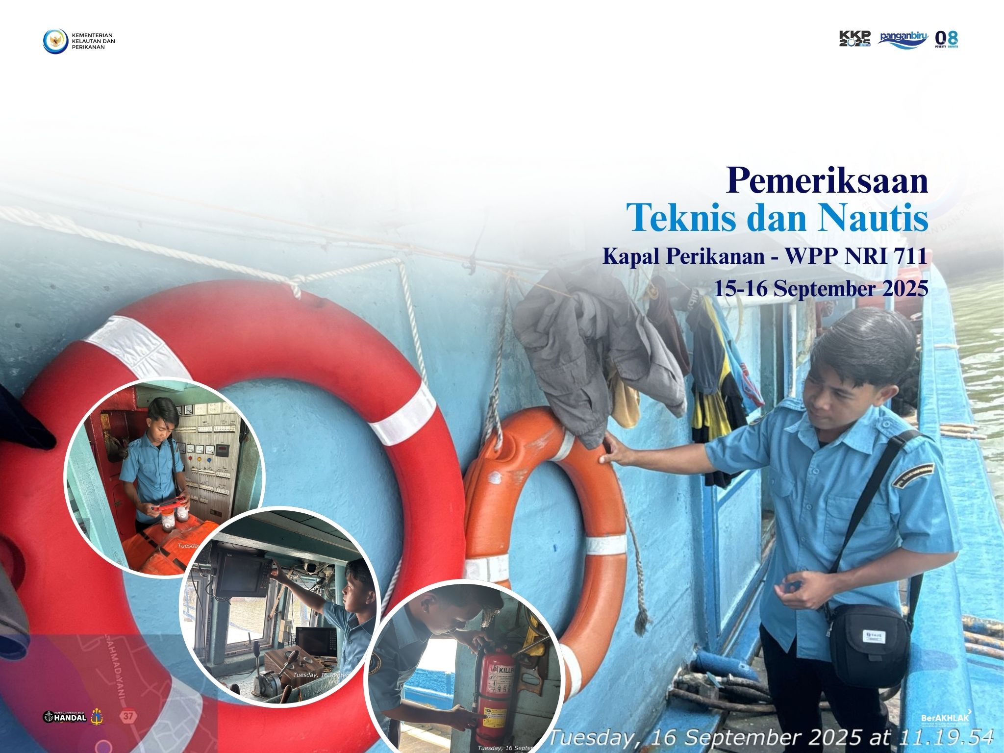 Senin-Selasa (15-16 September 2025), Petugas PP. Baran melakukan pengecekan kapal terkait dengan pemeriksaan teknis dan nautis kapal-kapal perikanan sebelum kapal berangkat untuk penerbitan SPB pada Kapal Penangkap dan pengangkut ikan WPP NRI 711.
