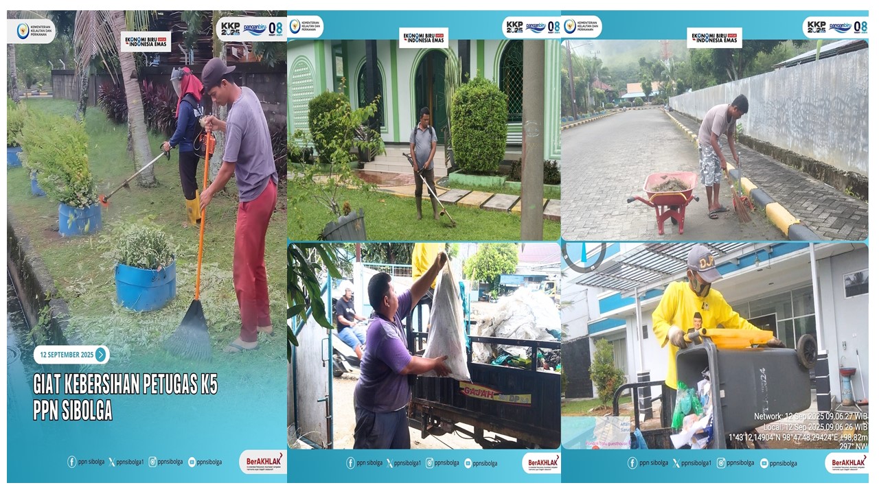 Jumat, 12 September 2025. Petugas K5 rutin melakukan kegiatan kebersihan lingkungan PPN Sibolga untuk menciptakan lingkungan yang nyaman dan sehat. Selain itu, kegiatan ini dilakukan untuk mendukung ISO 14001:2015, Sistem Manajemen Lingkungan dan men ...