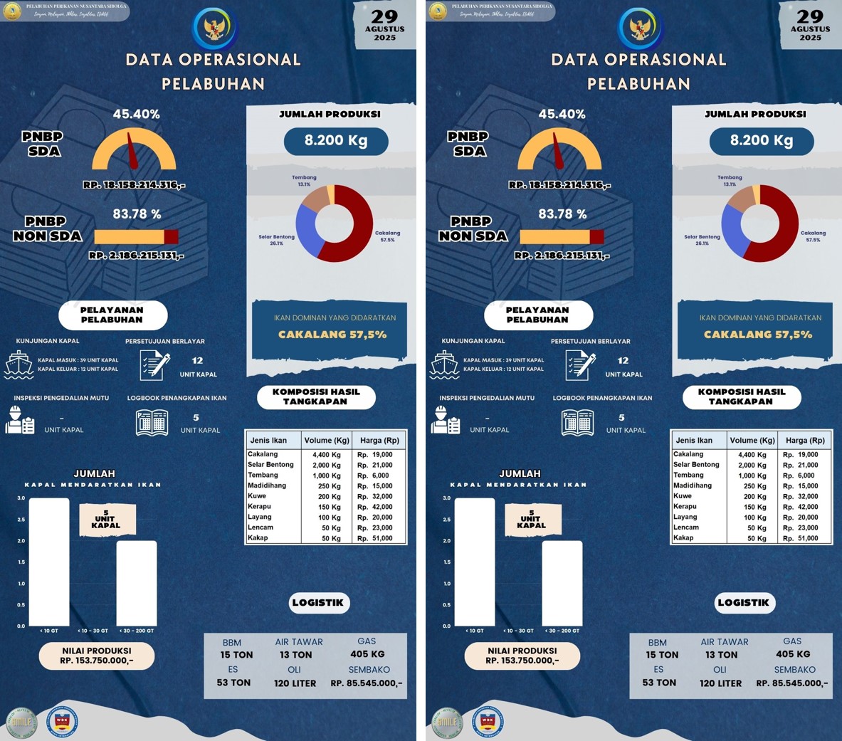 Yuk kita simak Infografis Data Operasional Harian Pelabuhan Perikanan Nusantara Sibolga 25 Agustus 2025,