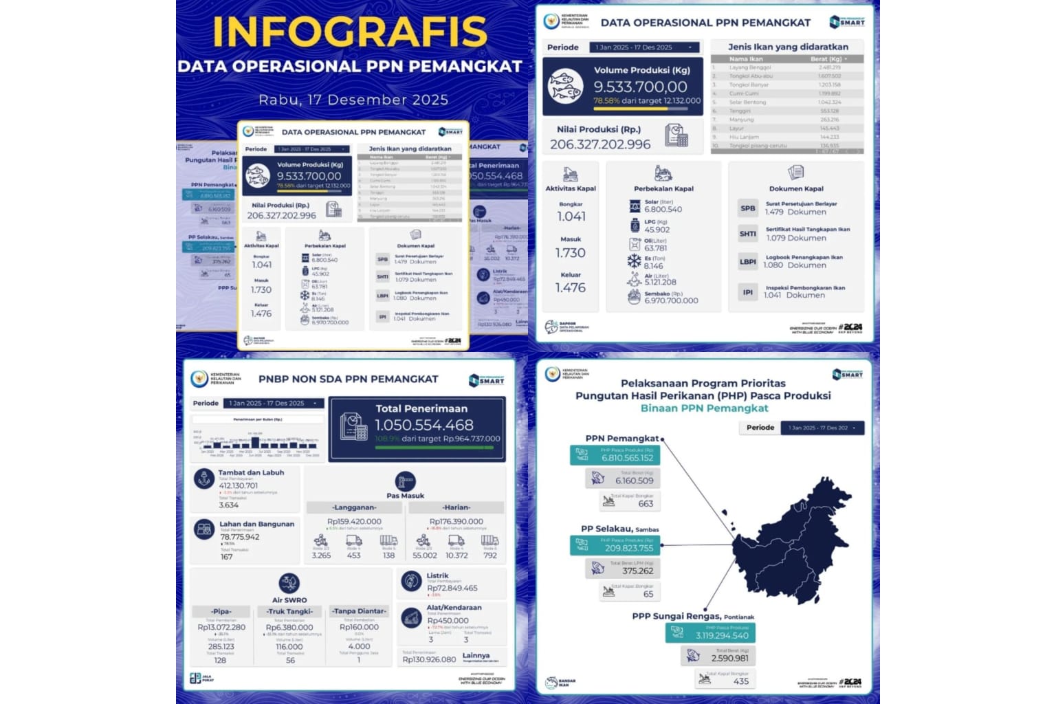 PPN Pemangkat memperoleh penghargaan atas penilaian Evaluasi Kinerja Pelabuhan Perikanan Periode Penilaian bulan November Tahun 2025 dengan predikat Sangat Baik.