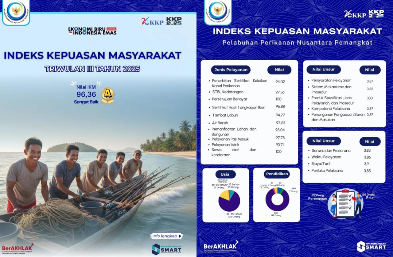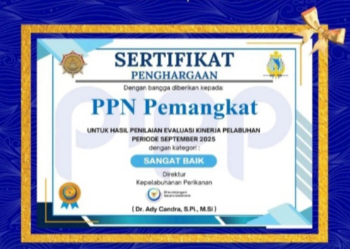 PPN Pemangkat memperoleh penghargaan atas penilaian Evaluasi Kinerja Pelabuhan Perikanan Periode Penilaian bulan September Tahun 2025 dengan predikat Sangat Baik.