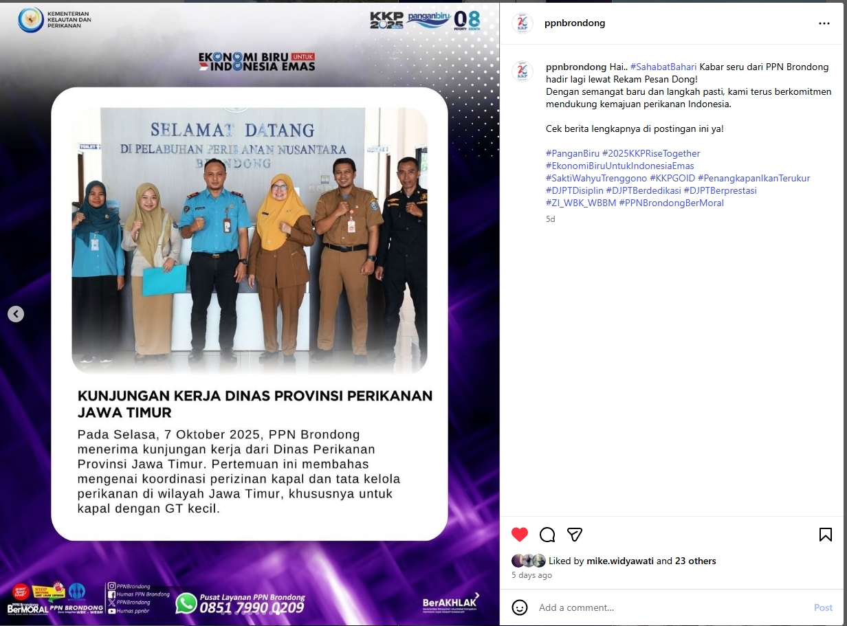 | Tindak Lanjut | perlua adannya penambahan tenaga security agar lebih terpantau seluruh lokasi yang perlu di amankan di lokasi Pelabuhan Perikanan Nusantara Brondong |