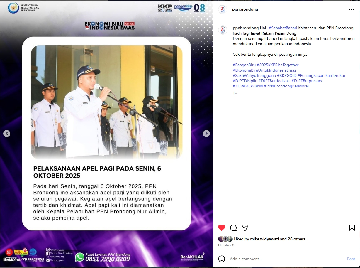 | Tindak Lanjut | Setiap Jum'at baik petugas Kebersihan pelabuhan maupun pegawai PPN Brondong melakukan kegiatan bersih-bersih yang biasa disebut dengan jum;at bersih |